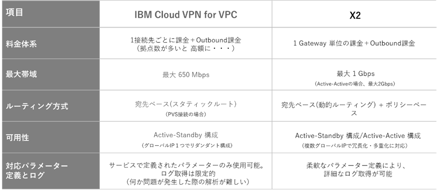 従来のIBM Cloudで利用されているVPN for VPCとの比較